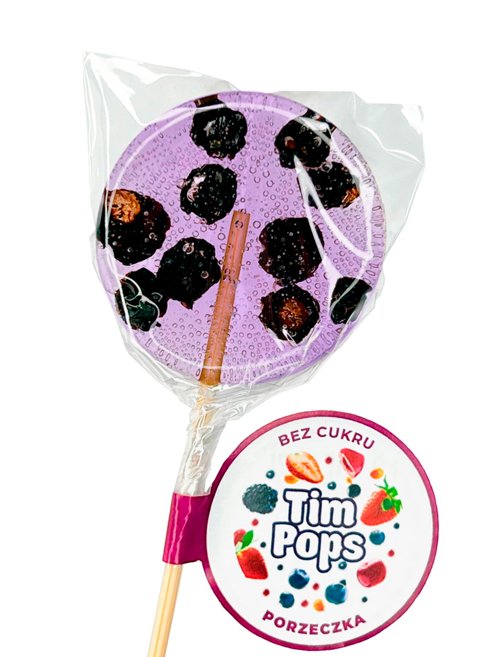 Nasz naturalny lizak o smaku czarnej porzeczki z jagodami w środku to idealna propozycja dla miłośników słodko-kwaśnego smaku.