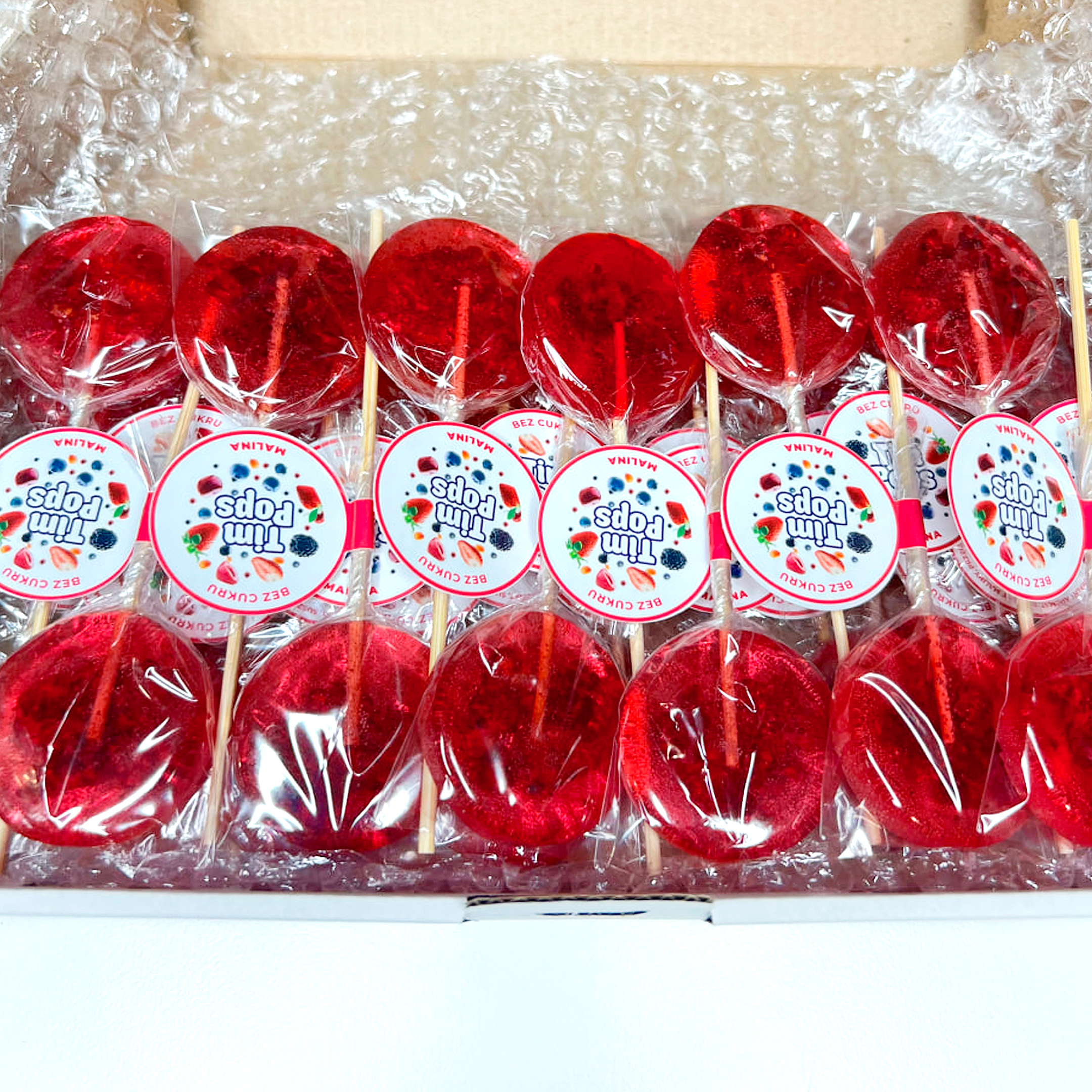 Zestaw zawiera 25 lizaków o smaku malinowym!