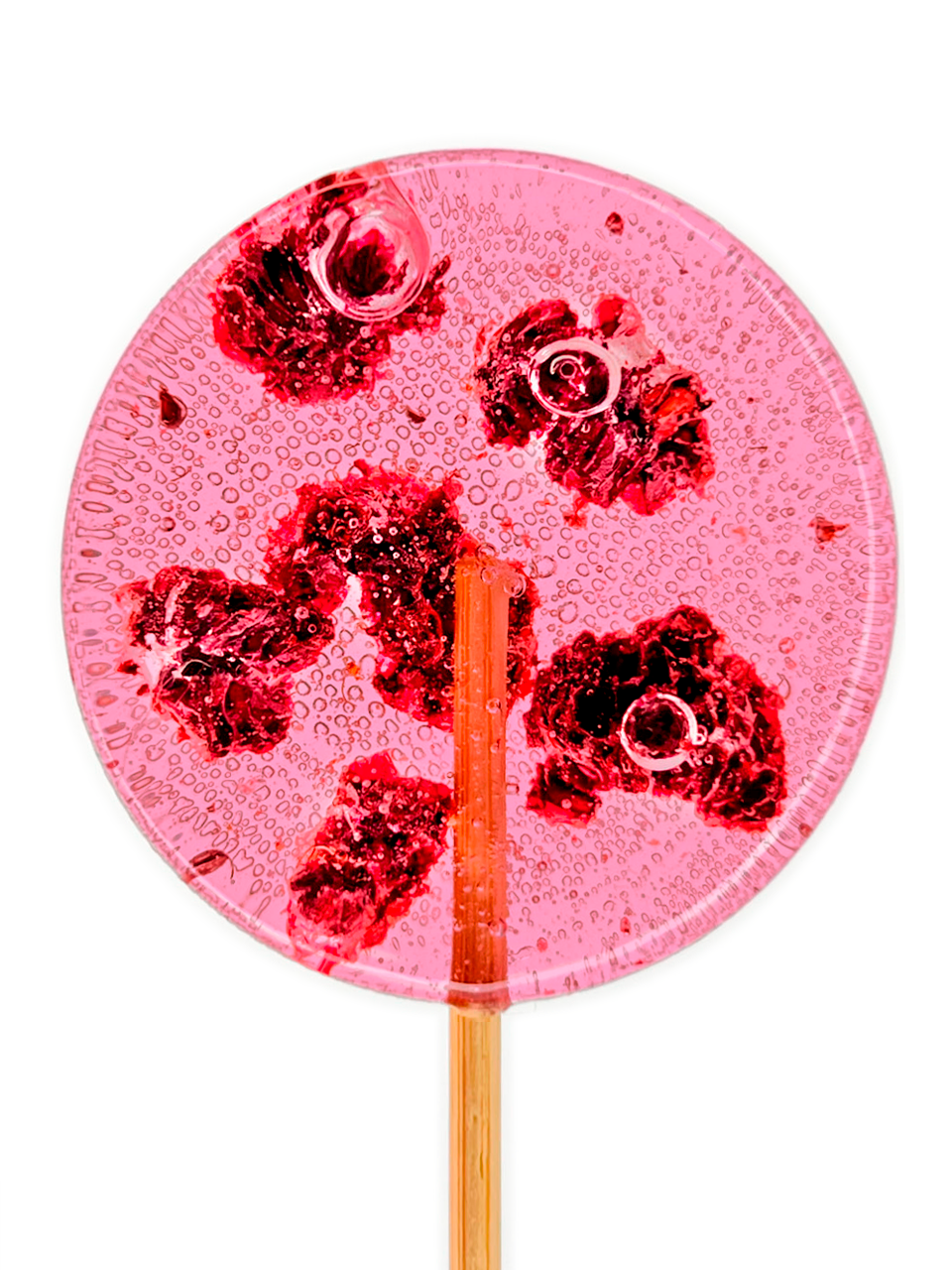 Lizak o smaku Malinowym z kawałkami w środku to idealna propozycja dla miłośników słodkości, którzy chcą zrezygnować z cukru.