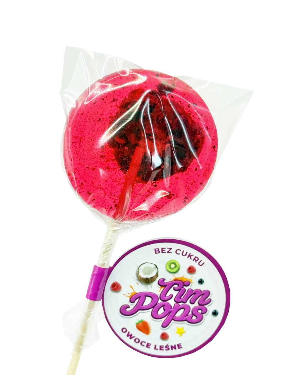 Lizak bez cukru z owocem w środku o smaku Leśnych Owoców