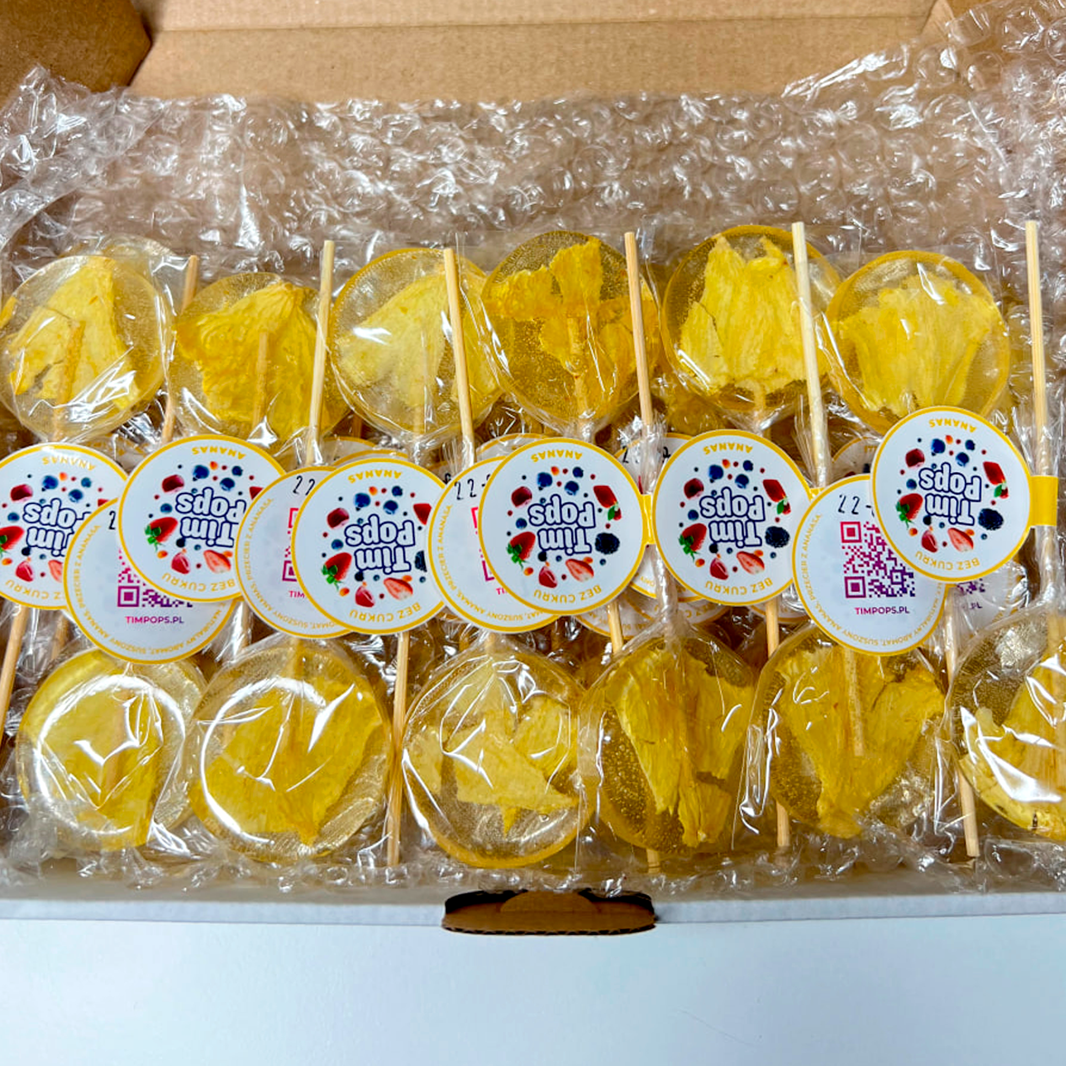 Zestaw zawiera 30 lizaków o smaku ananasowym!