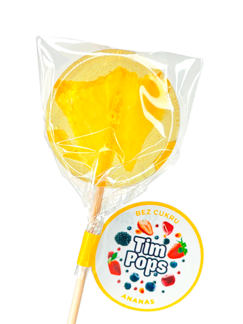 W środku lizaka znajdują się kawałki pysznego ananasa, który dodaje mu wyjątkowego charakteru.